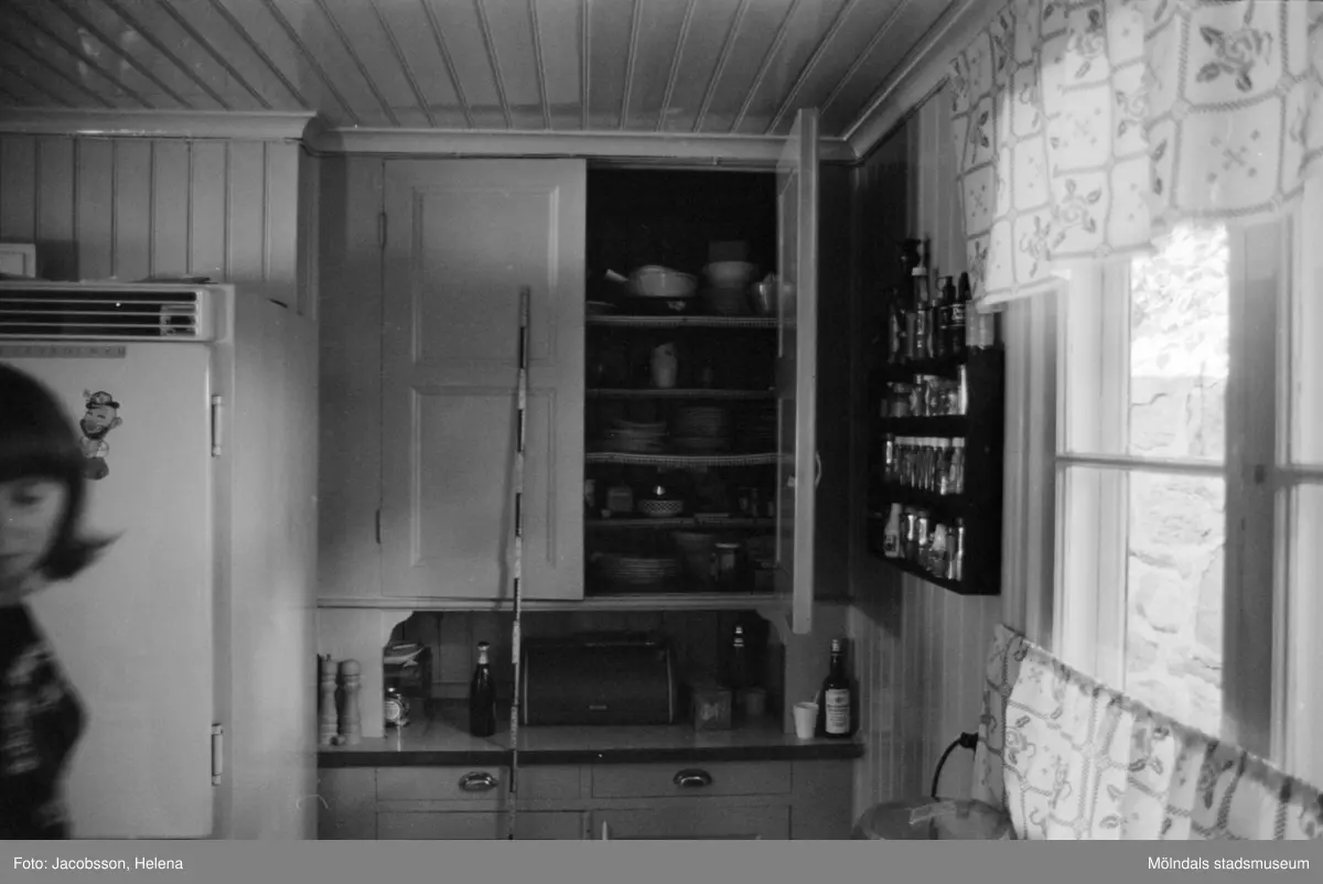 Bostadshus Roten M 11-12, okänt årtal. Köksdelen på vindsvåningen avbildad. Okänd person till vänster.