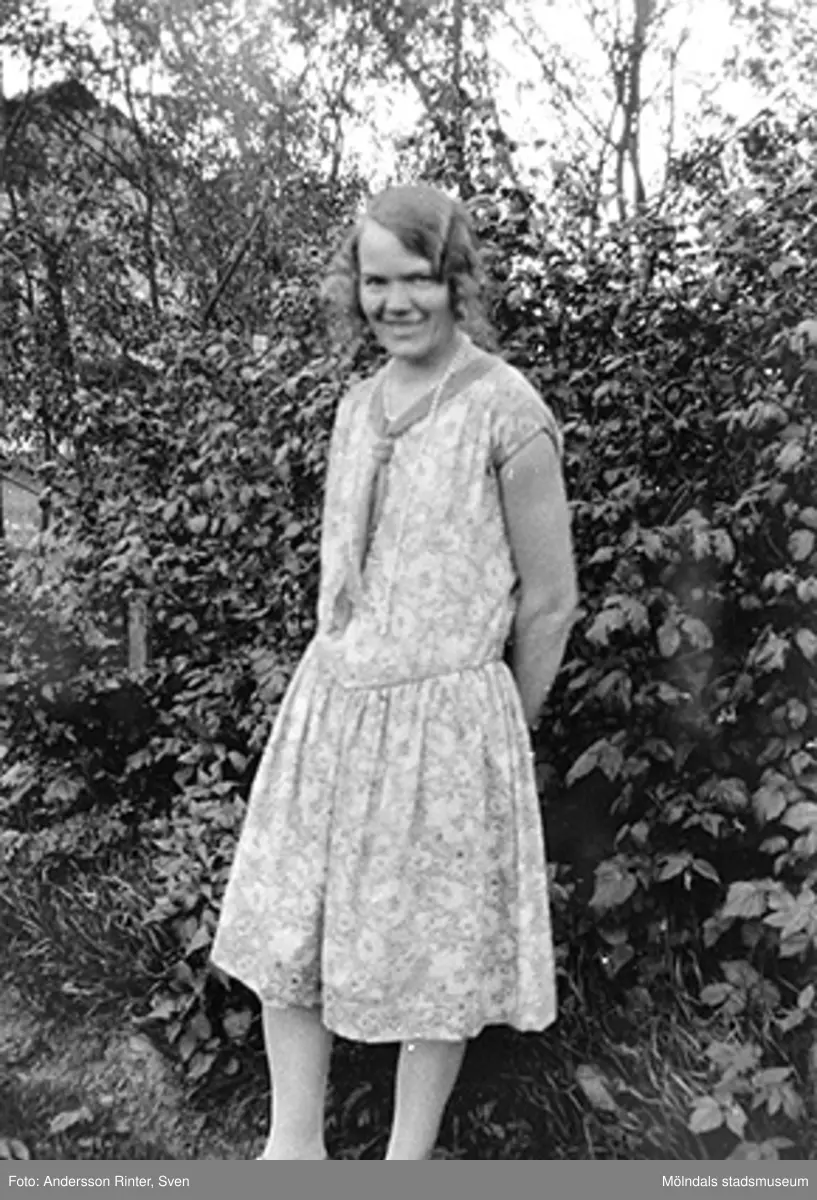 Elin Andersson (gift Bjufwing) fyller 29 år. Står i trädgården vid kvarnen.