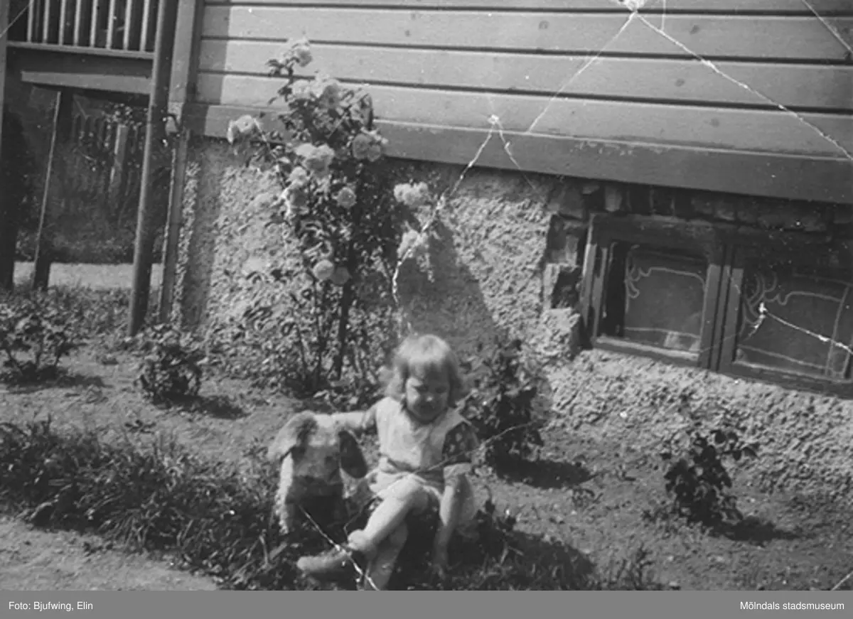 Lillemor Andersson med hunden Ming på Barnhemsgatan 13, cirka 1932.