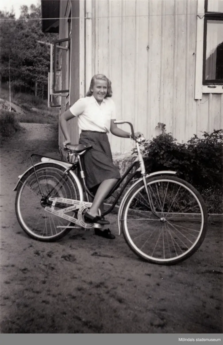 "Min cykel och jag". Berit Gustafsson med sin nya cykel år 1949.