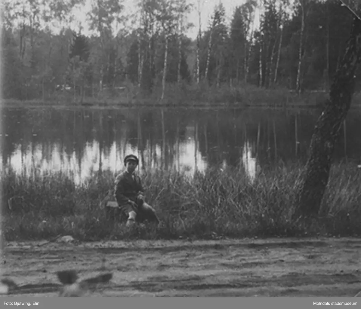 Lars "Lasse" Andersson vid en sjö, 1930-talets början. Han är son till Elisabet och Oskar Andersson. Fotografen Elin var lillasyster till Oskar Andersson, givaren Brittas morfar.