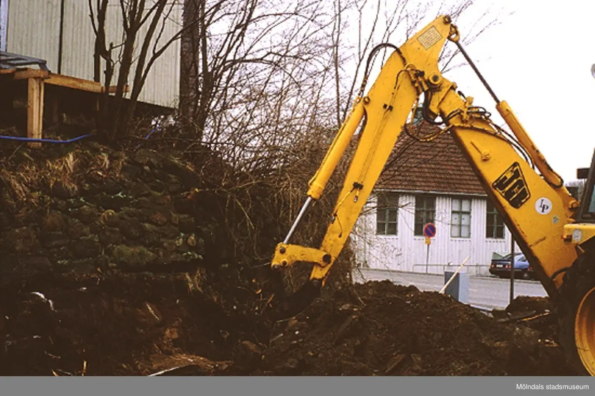 Grävarbete vid Lyktplatsen i Kvarnbyn, april 1993.