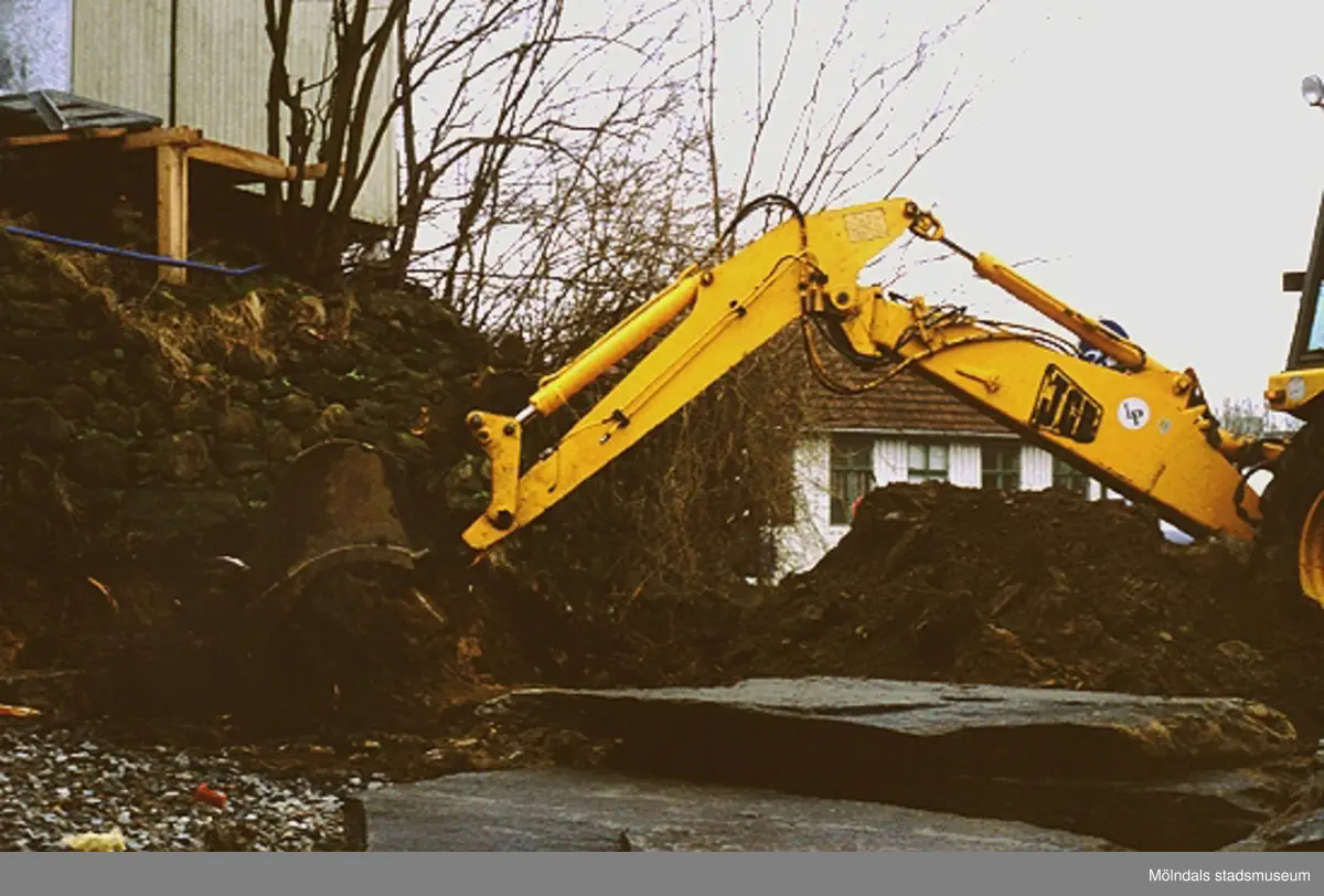 Grävarbete vid Lyktplatsen i Kvarnbyn, april 1993.
