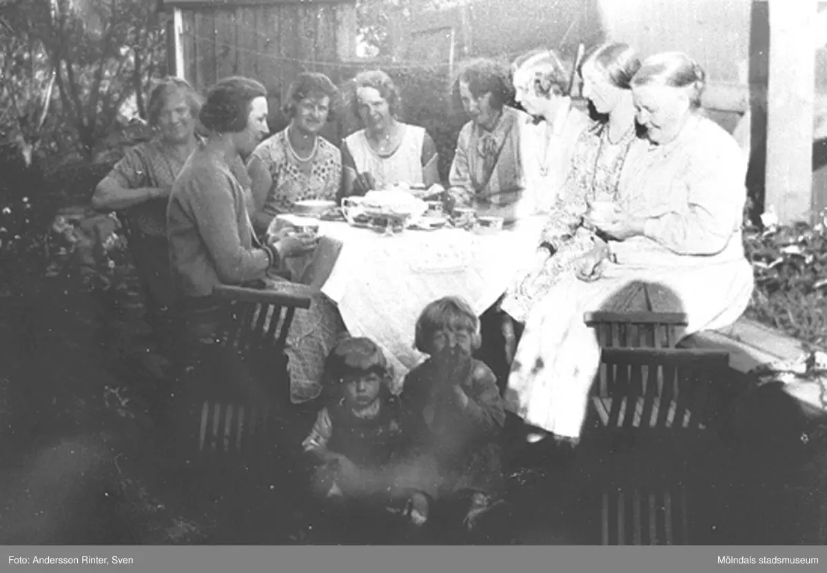 Kaffekalas hos Josefina Andersson (längst till höger i bild) med döttrar, systrar och barnbarn.