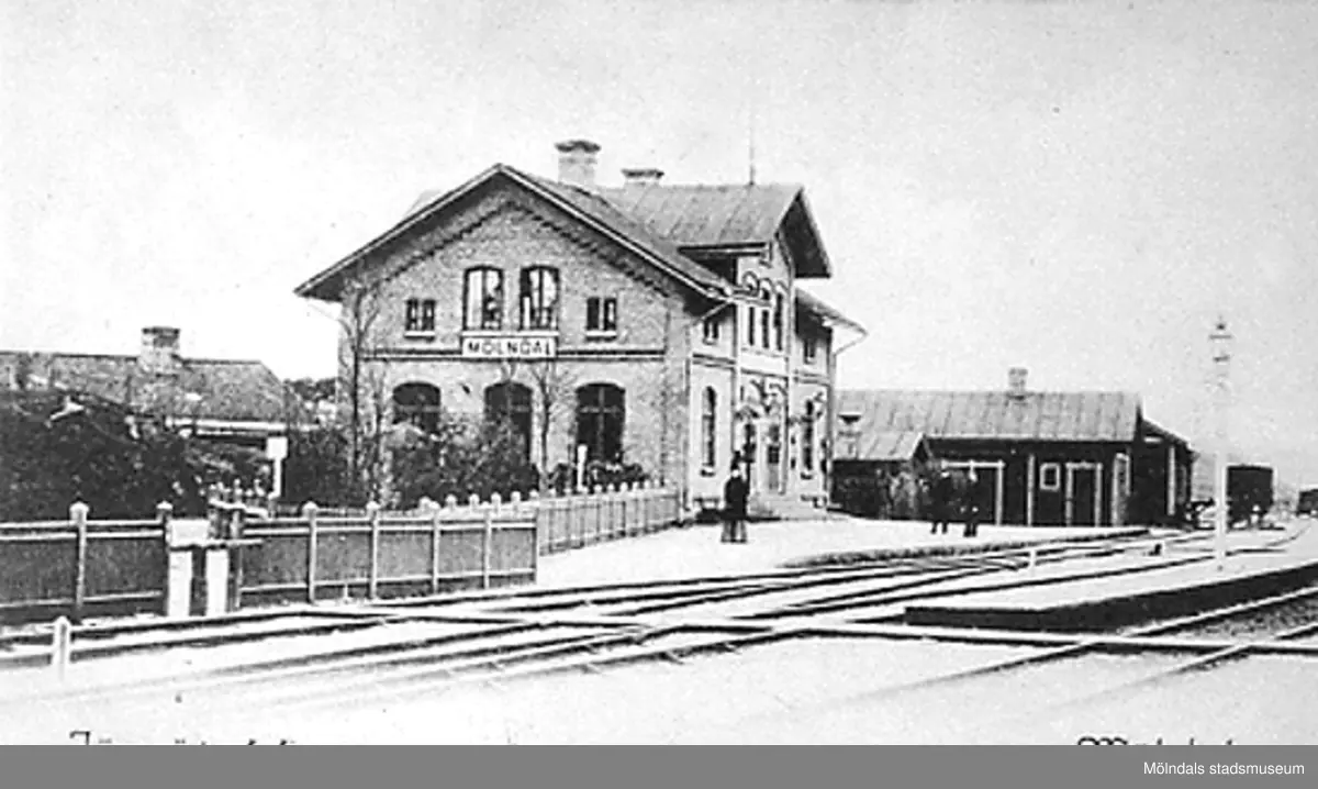 Avfotograferat vykort av järnvägsstationen Mölndals övre, okänt årtal.