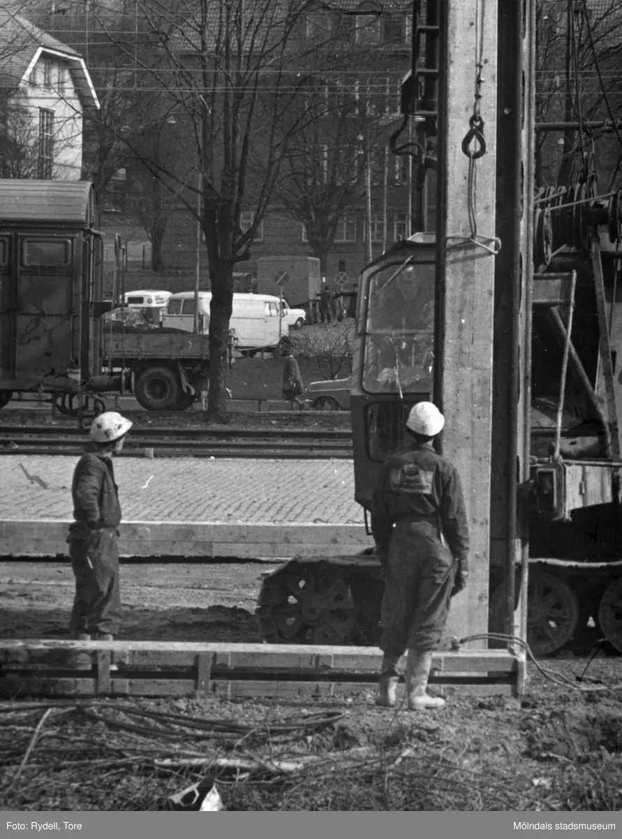 Pålning vid Kvarnbygatan i Mölndal, år 1967.