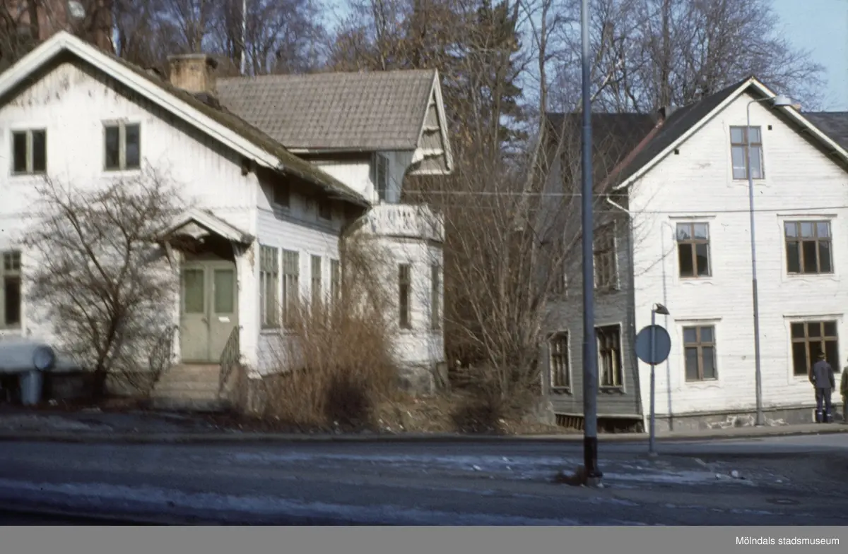Hus längst upp på Frölundagatan i Mölndal, 1970-tal. Notera att Fässbergs kyrka skymtar i bildens övre vänstra hörn.