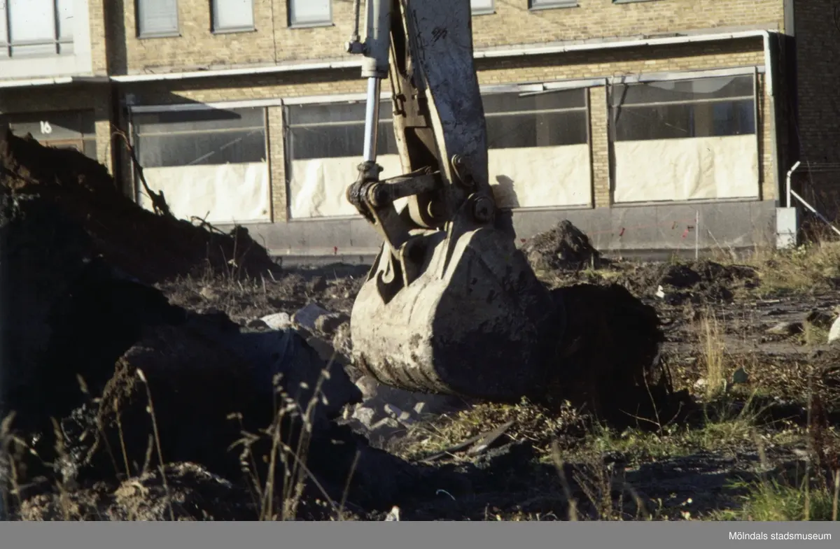 Titel: Centrumhuset under byggnation vid Frölundagatan i Mölndals centrum på 1970-talet.