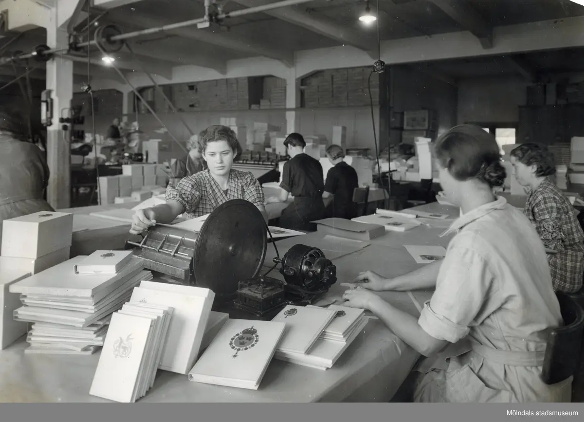 Kvinnor sysselsatta med papeteritillverkning på Papyrus.