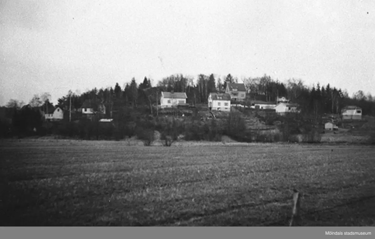 Torrekulla bostadsområde i Kållered, 1949. Vy från Alveredsdalen mot Torrekulla. Åkermarken hörde till bönderna i Alvered.