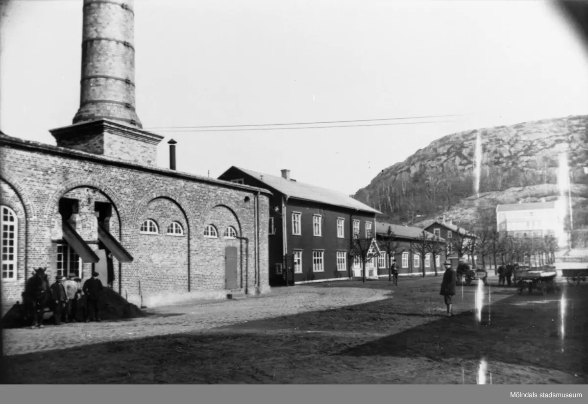 Göteborgs Jästfabrik med skorstenshuset och ekonomibyggnaden från sydväst, 1900-1910.
