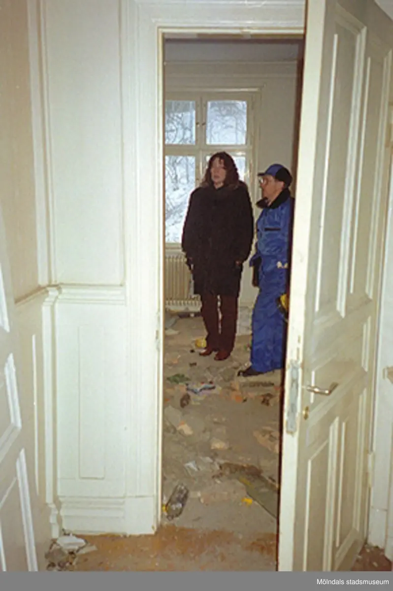 Interiör i bostadshuset Villa Solbacken i Krokslätt, januari 1995. Byggnadsdetalj: Dörr.