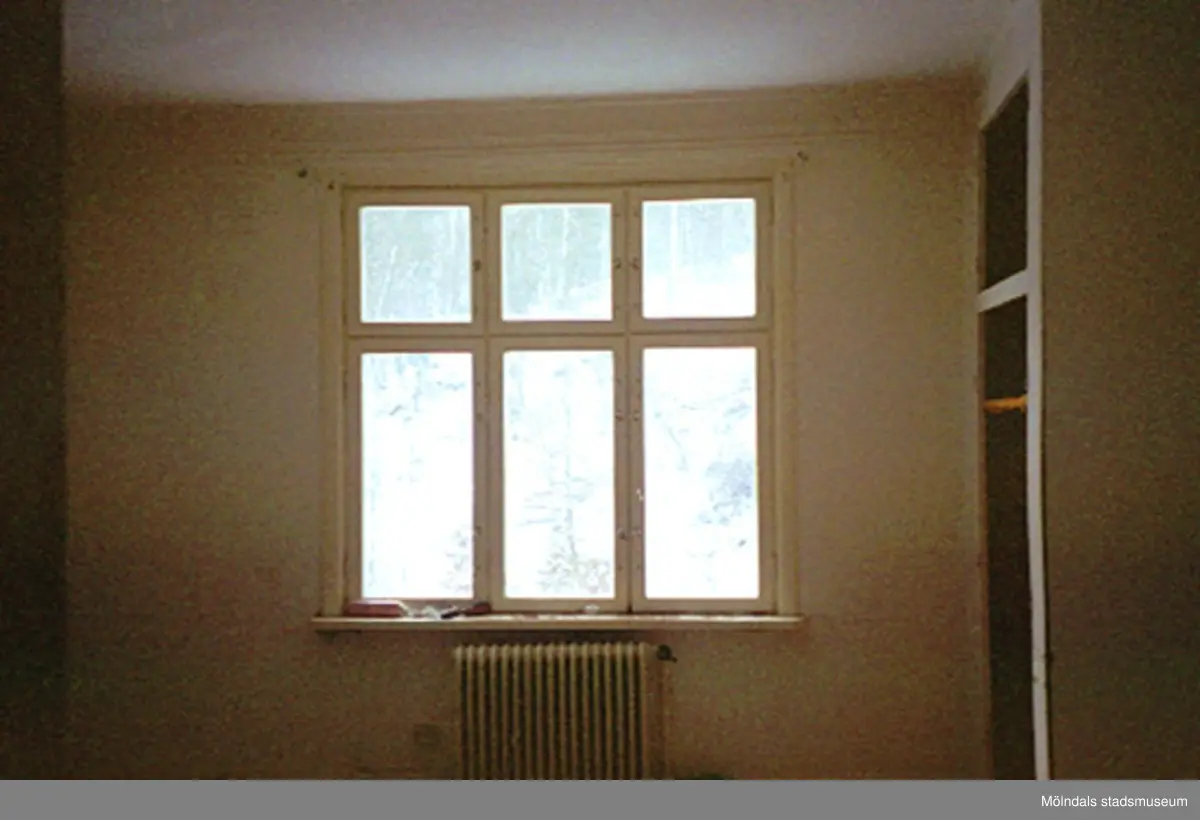 Fönster med ett element under i Villa Solbacken i Krokslätt, januari 1995.