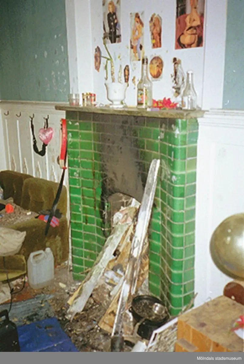 Öppen spis i bostadshuset Villa Solbacken i Krokslätt, januari 1995.