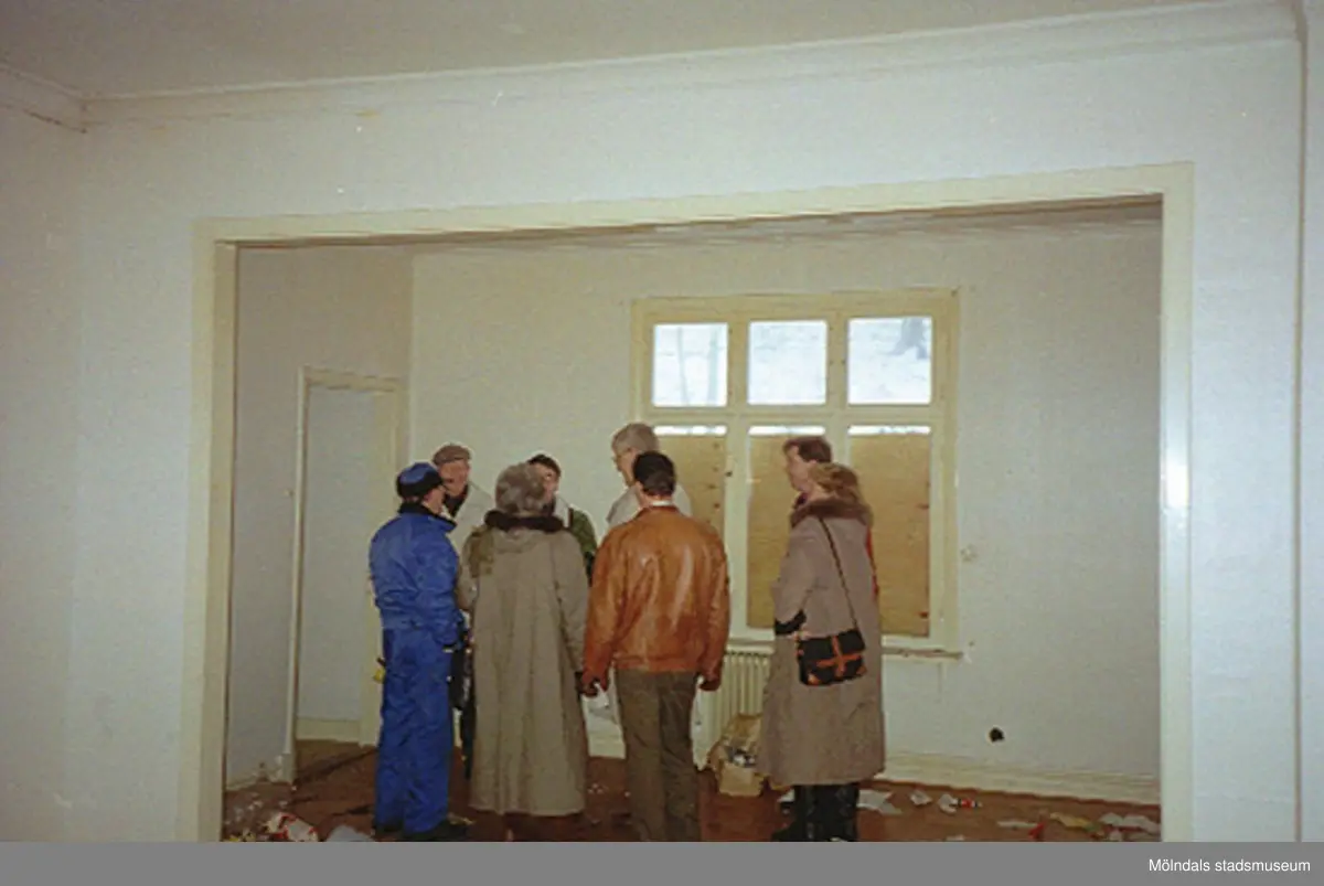 Interiör i bostadshuset Villa Solbacken i Krokslätt, januari 1995. Okända personer.