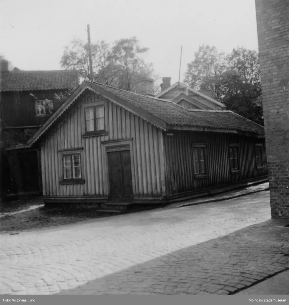 Kvarnfallet 27, "Egens hus" (kvarnägare Egen bodde där) vid Forsebron år 1935. Kvarnfallet var en äldre gatuadress som ej längre är i bruk. Till höger skymtas byggnaden Sveaborg. Relaterat motiv: 2004_0240.