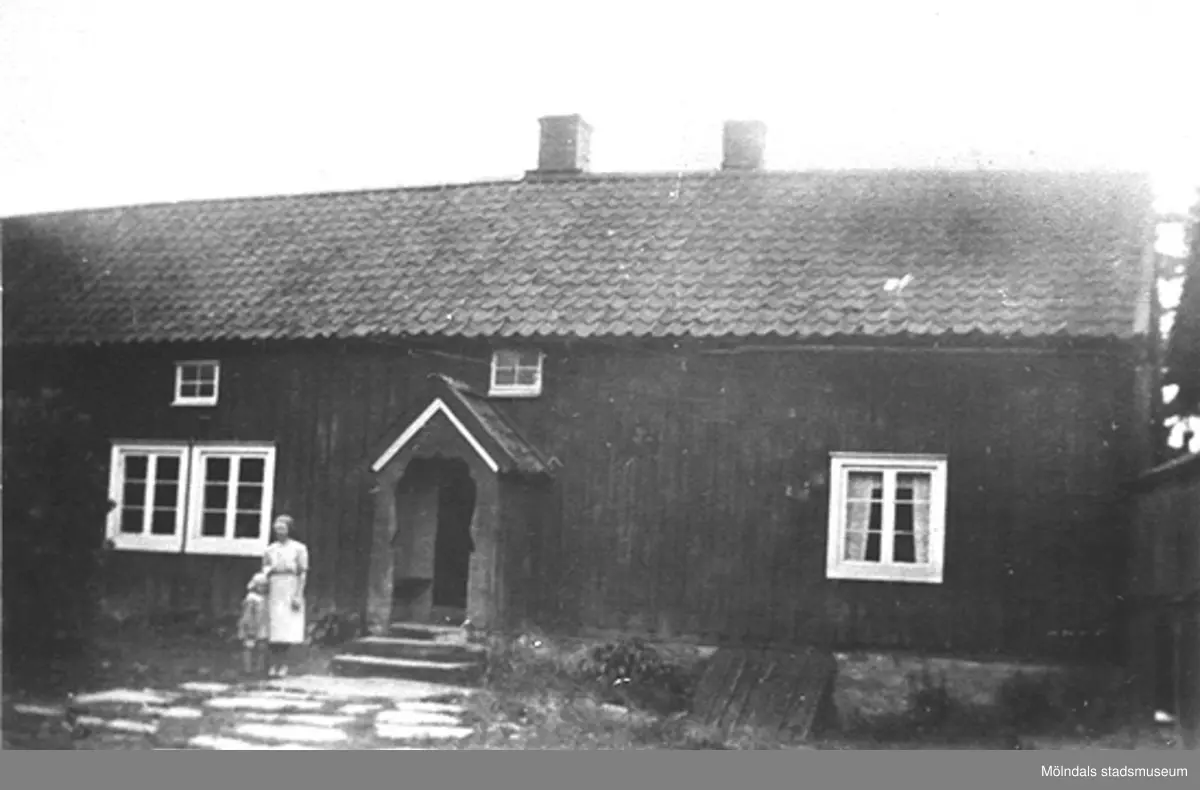 Anna Larsson (f. Hasselberg) med dottern Berit framför Salves gård, Hällesåker 4. Det var Annas mor,