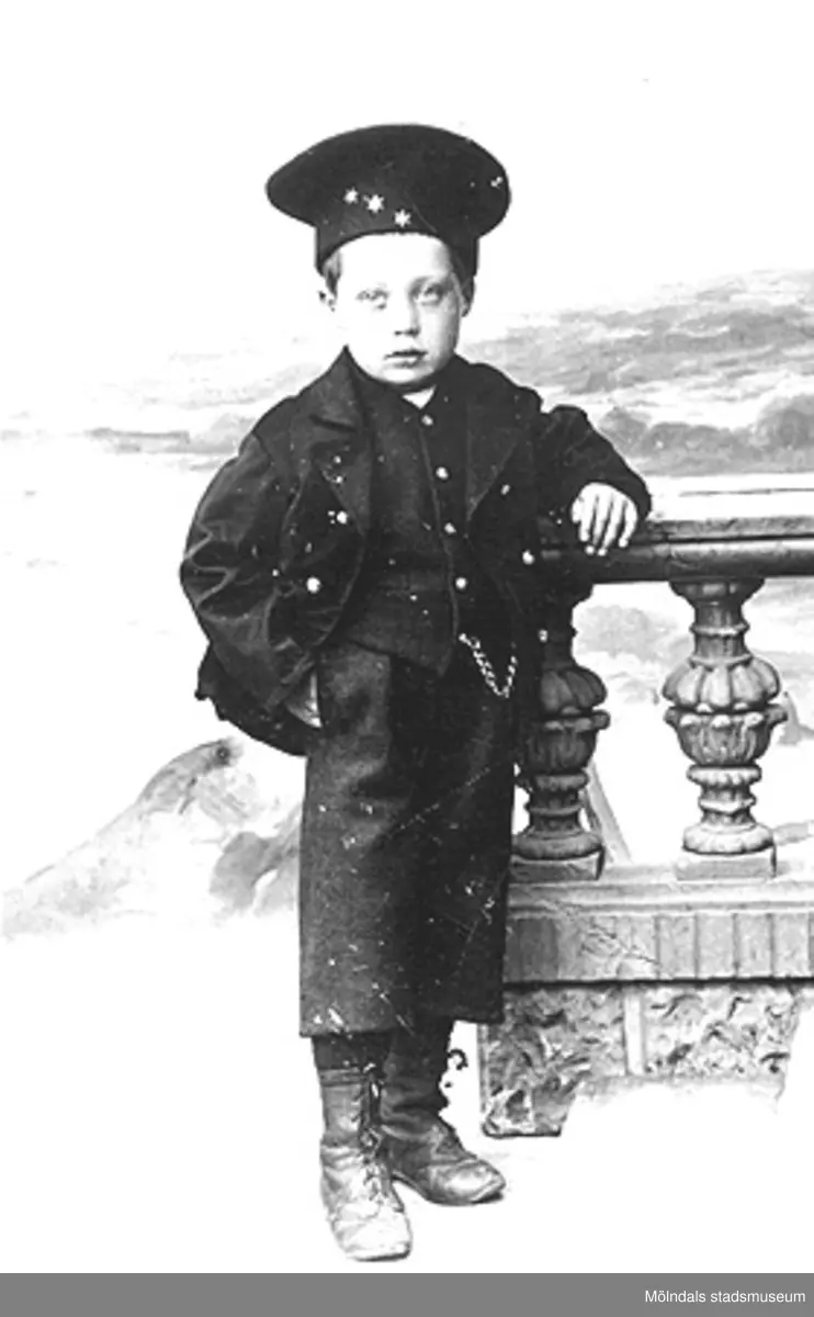 Porträtt på Hjalmar Olausson som gosse år 1894. Han var aktiv i fackföreningar. Ordförande och förman på fabriker.