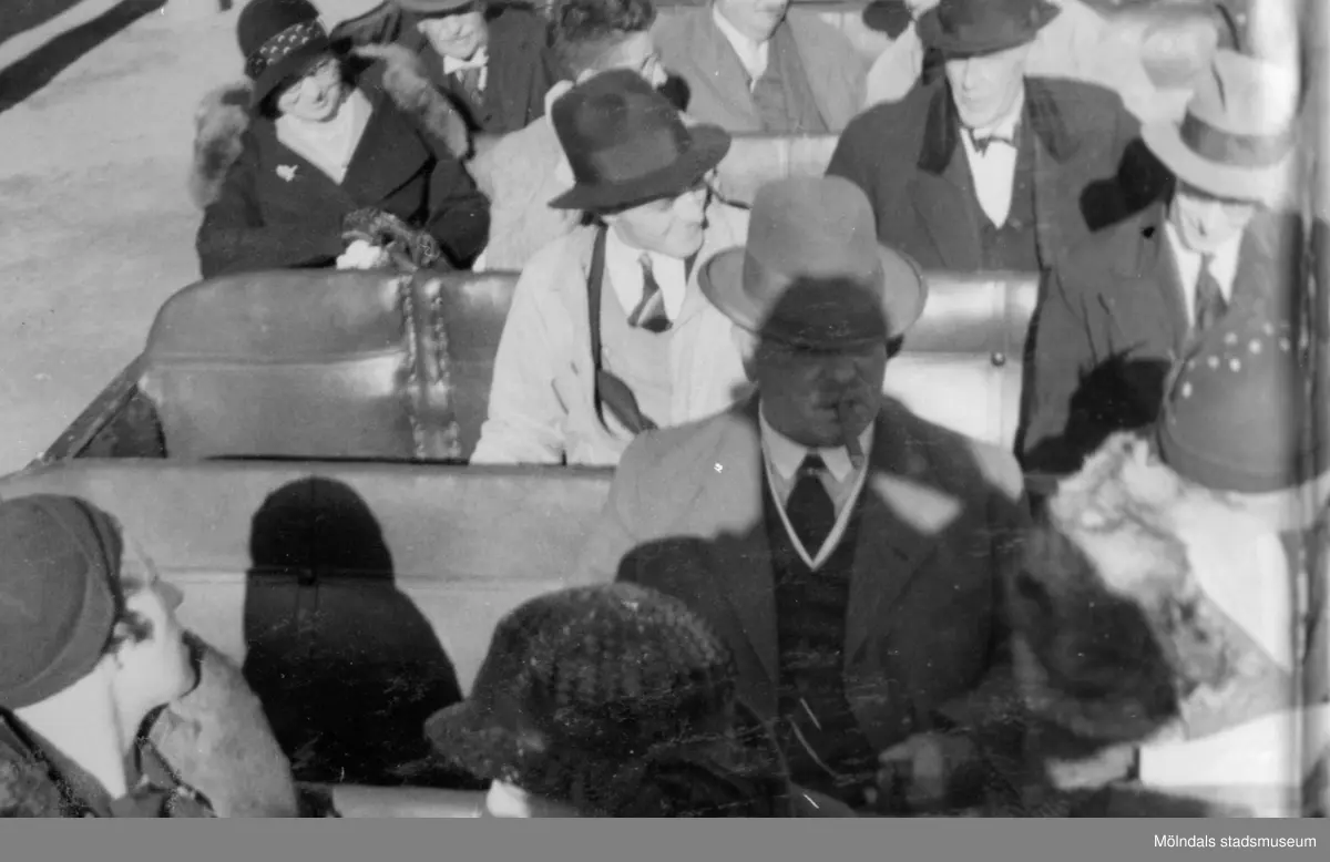 Engelska arkitekter åkandes omnibuss. De var på besök i Göteborg år 1932. Mr Henry Dowling, ordförande i "Incorporated Institute of British Decorators", tog initiativet till resan.