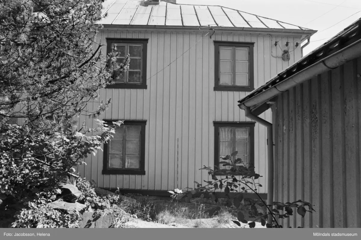 Bostadshus Roten M 11-12, okänt årtal. En husgavel med fyra fönster samt del av ett annat hus.