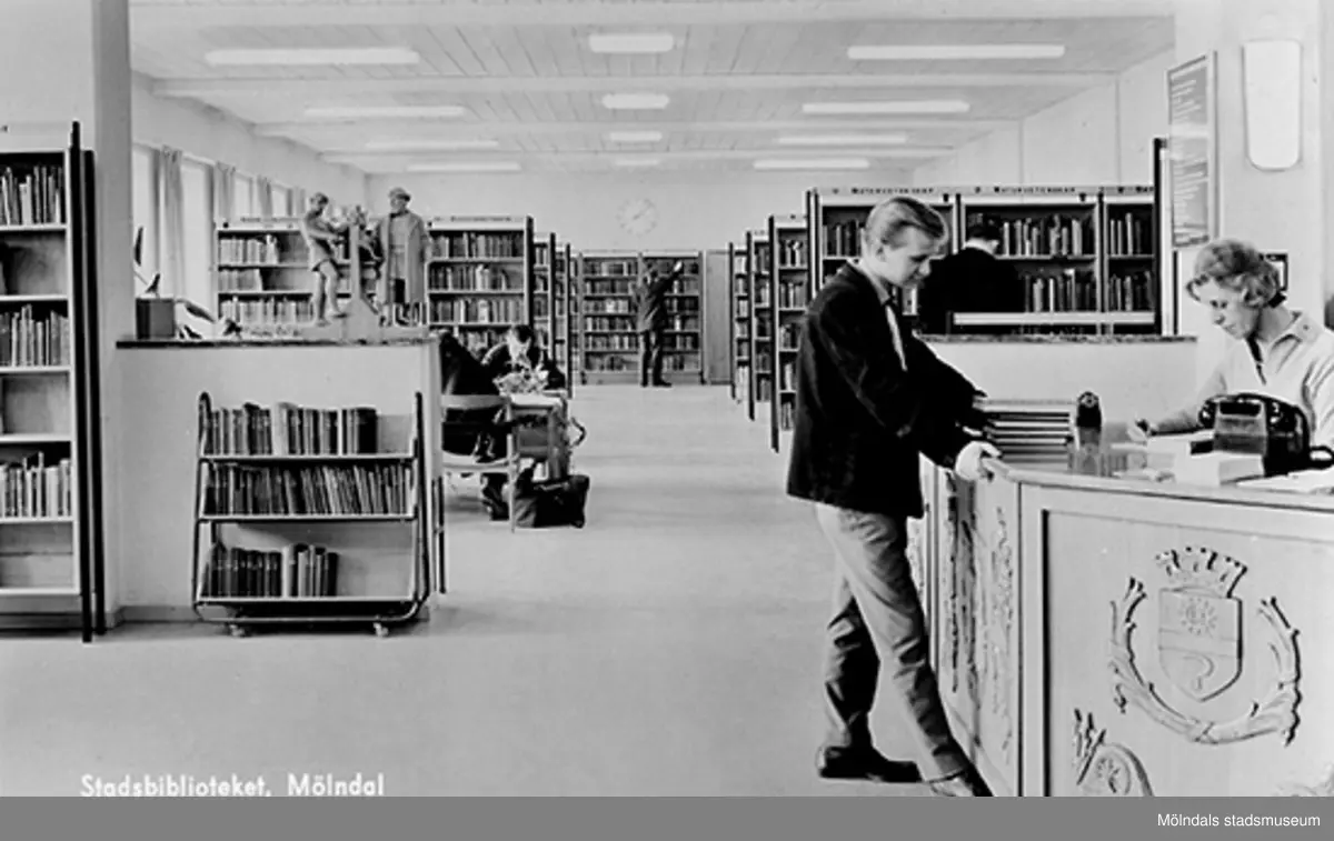 Vykort med interiör från Stadsbiblioteket i Mölndal.