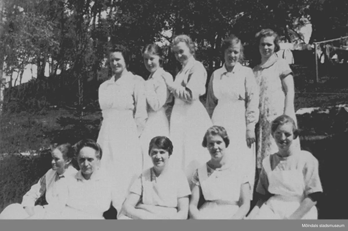 Tio kvinnor. Troligen personal på Stretered.