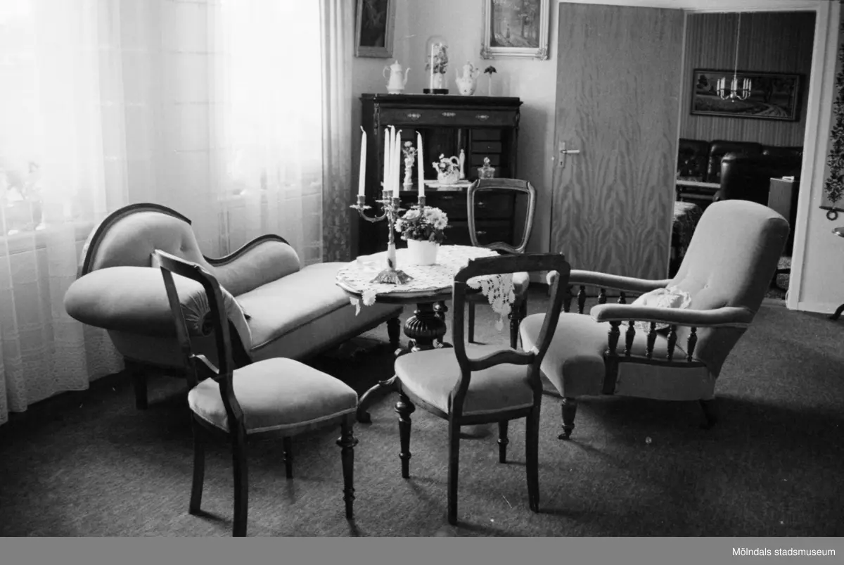 Titel: Interiör från Kongegården Johannesfred i juni 1987. Huset byggt ca 1870. Inköpt av släkten (Ingrid Karlssons?) 1900. Fogdegård i mitten av 1600-talet. Byggnadslov/rivningsansökan.