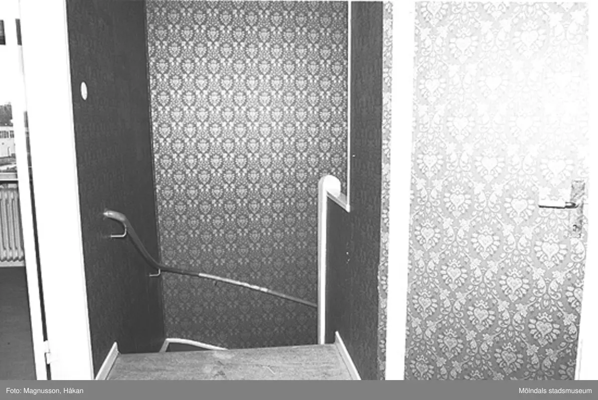 En trappa i Kållereds station på Våmmedal 3:135 i Kållereds centrum, februari 1991.
