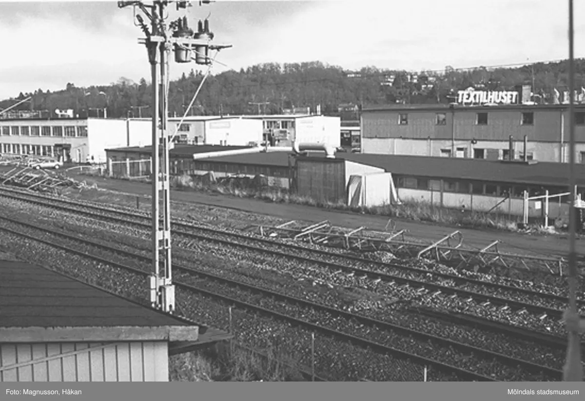 Utsikt från Kållereds stations köksfönster på Våmmedal 3:135 i Kållereds centrum, februari 1991.