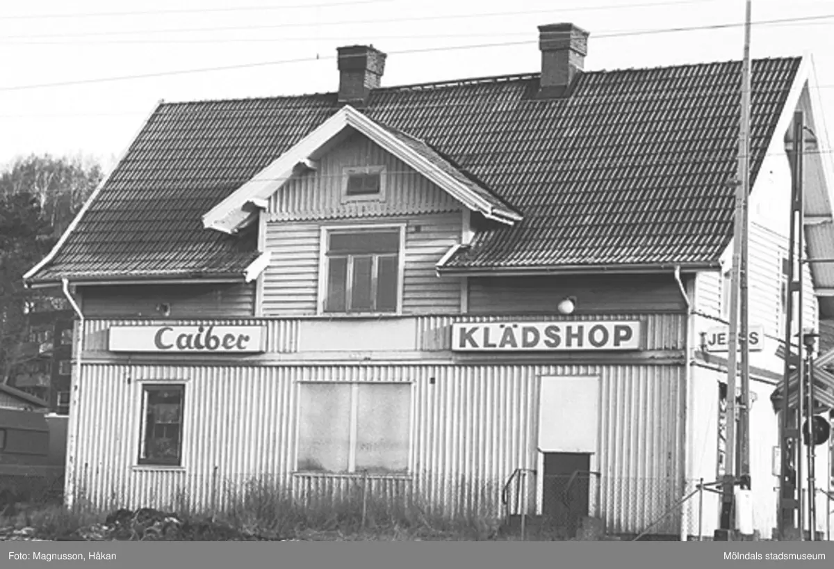 Utsikt mot Kållereds stations köksfönster på Våmmedal 3:135 i Kållereds centrum, februari 1991.
