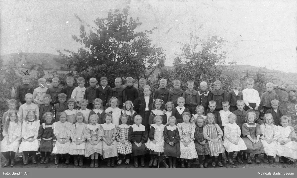 Exteriört klasskort på första klass i Kållered 1907. Namnuppgifter saknas.