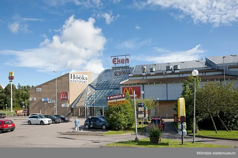 Köpcentret EkenCenter i Kållered, Mölndals kommun. Byggnadsdokumentation inför rivning. Fotografi taget 2012. Byggnaden, som har adressen Ekenleden 3, revs år 2013 och är ersatt av en byggnad som även den innehåller detaljhandel.