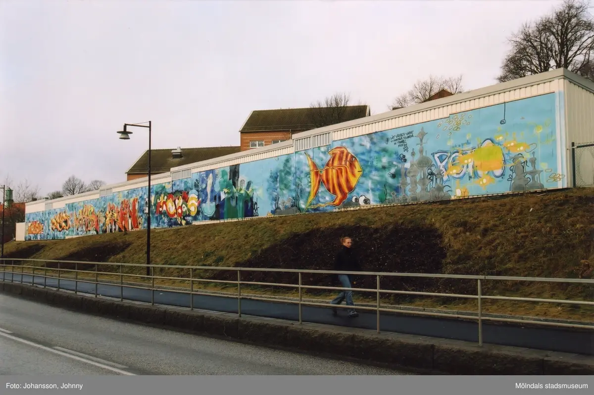 Graffiti längs Kvarnbygatan i Mölndal, år 2003.