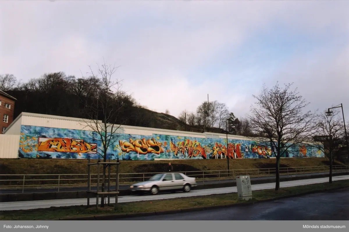 Graffiti längs Kvarnbygatan i Mölndal, år 2003.