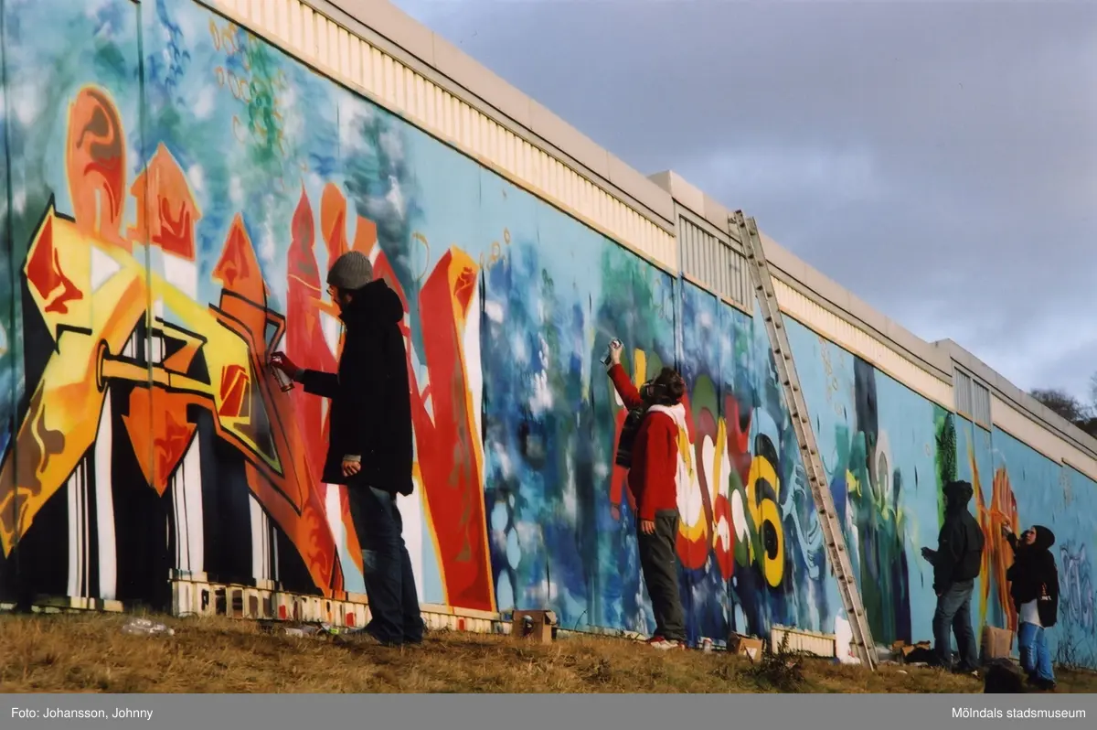 Graffiti längs Kvarnbygatan i Mölndal, år 2003.