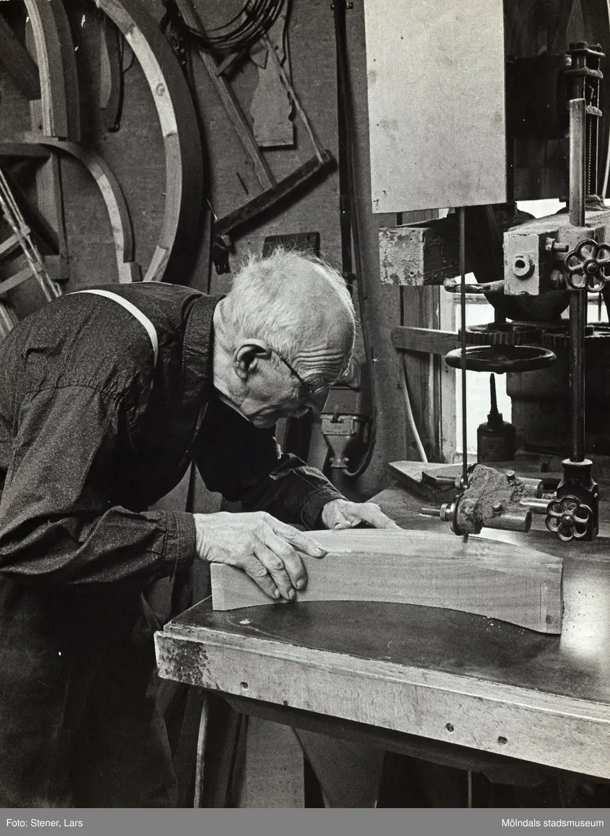 Snickaren Axel Andersson år 1975. Här i arbete. Han både arbetade och bodde på Barnsjöback.