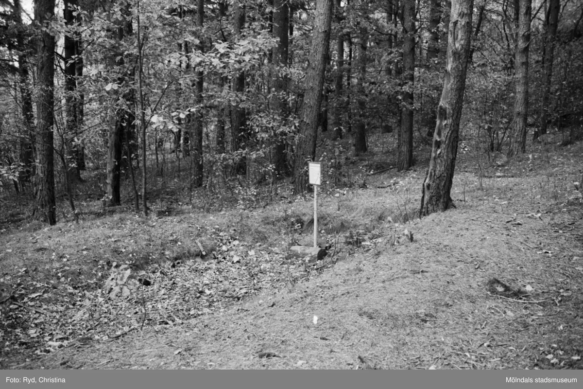 Denna hällkista på Safjället eller Toltorpsberget (ovanför Bifrostgatan) är plundrad och hällarna är borta. Nu återstår endast en fördjupning i marken strax öster om Indiandammen (den sydligaste av de tre dammarna på Safjället). "Hällkistan" blev fotograferad 30/10 1991. R 22, hällkista.