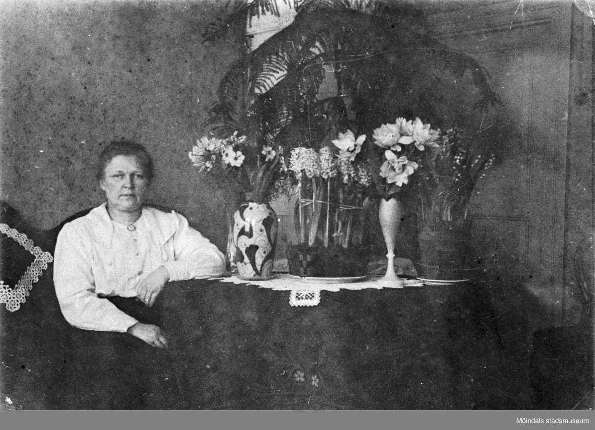 Amalia Precht-Reuter (1871-1956), cirka 1940-1950-tal. Hon var dotter till mäster Precht-Reuter, sockerbruksmästare vid Korndals bruk, senare anställd vid Carnegies bruk.