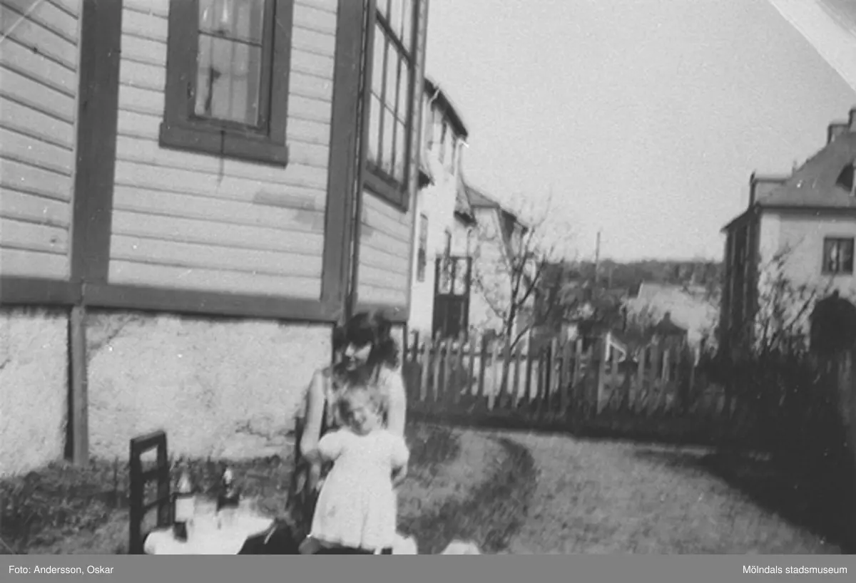 Lillemor med mor Elisabeth Stam Andersson framför huset på Barnhemsgatan 13, 1930-talets början.
