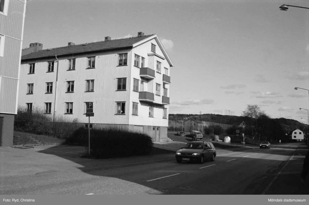 Vy från Krokslätts Parkgata, 1992. Kvarteret Illern, Krokslätts Parkgata 44 A-C. Sörgårdsskolan ligger till vänster utom synhåll.