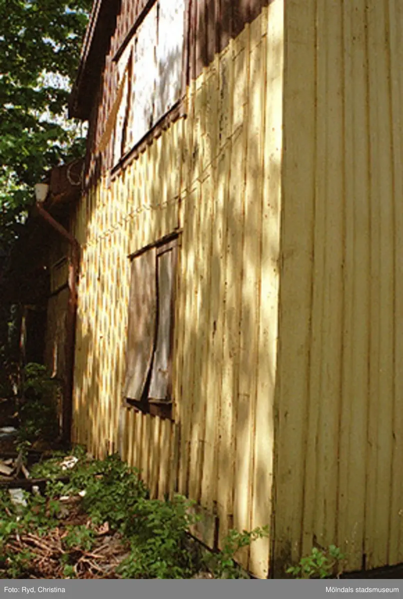 Byggnadsdetaljer: Fasad och fönster på det gamla bostadshuset Ranntorp 1:16 i Ranntorp, Lindome, maj 1994. Huset är nu rivet.