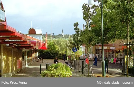 Blickpunkt för gågatan i Lindome centrum, år 1999.