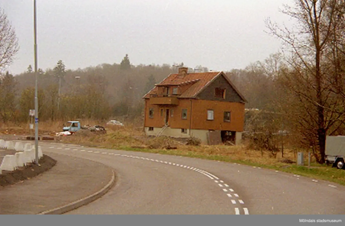 Ett bostadshus på Bangårdsvägen, Torrekulla 1:49, i Kållered. Rivet april 1994.