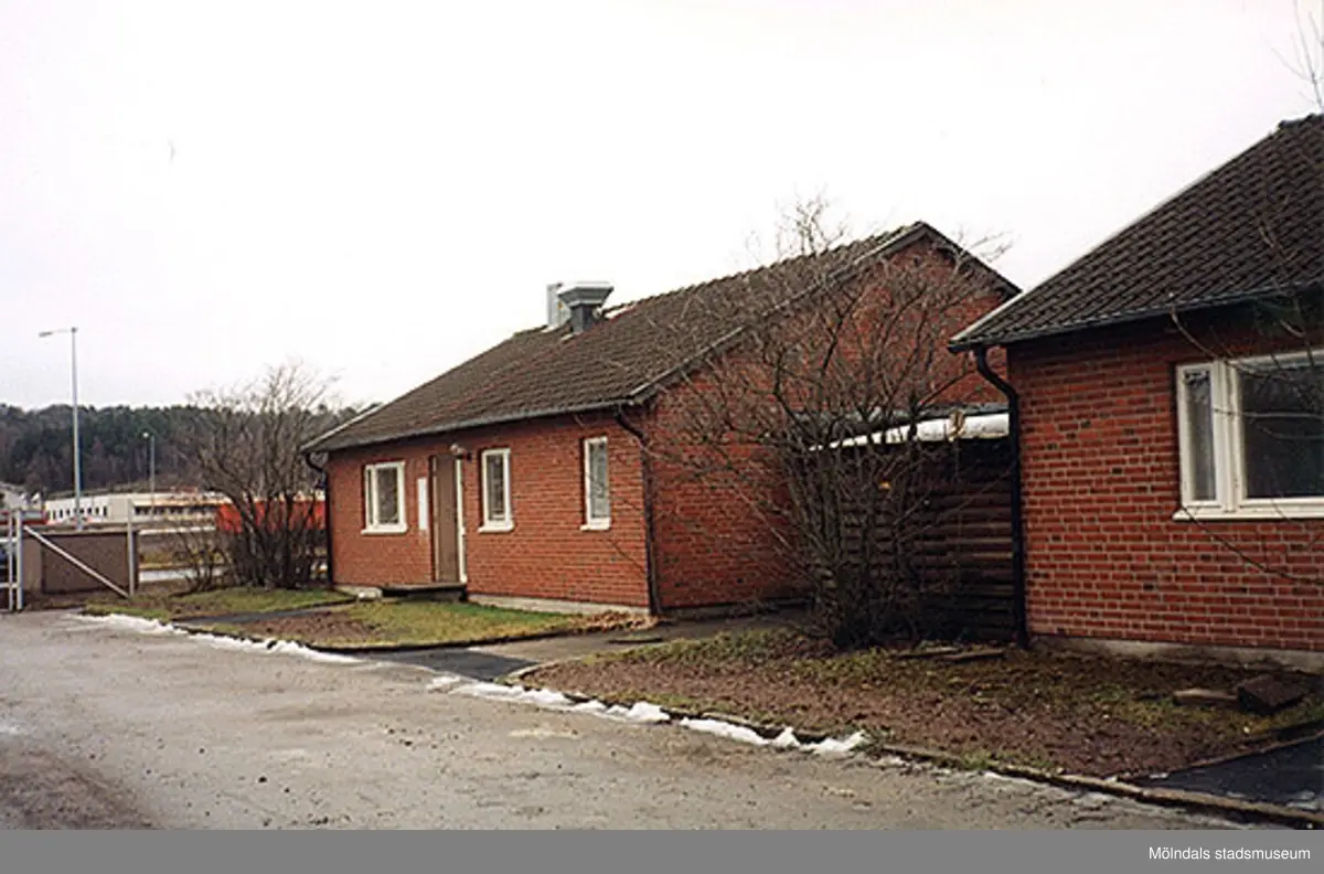Två tegelröda villor i Åbro industriområde på Kråketorpsgatan/Pepparedsleden 1, Tingshuset 4, Östra Balltorp 1997.