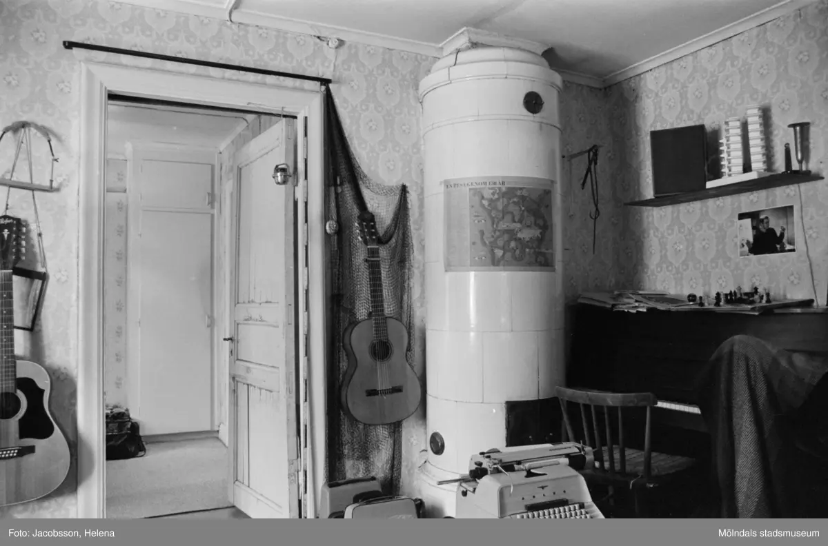 Rum med kakelugn i bostadshus Roten M 11-12, okänt årtal. Vindsvåningen avbildad.
