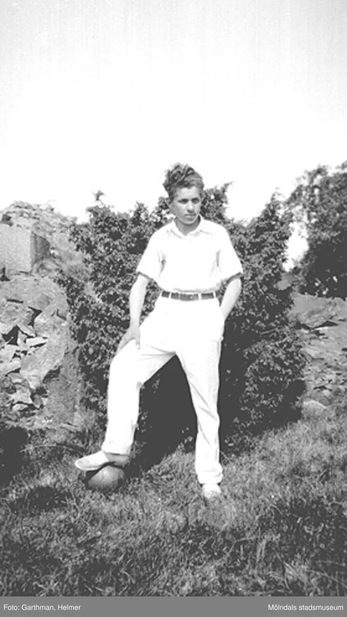 Helmer Garthman och med kompisar tältar vid Lygnern i Fjärås Bräcka. 1940-tal,