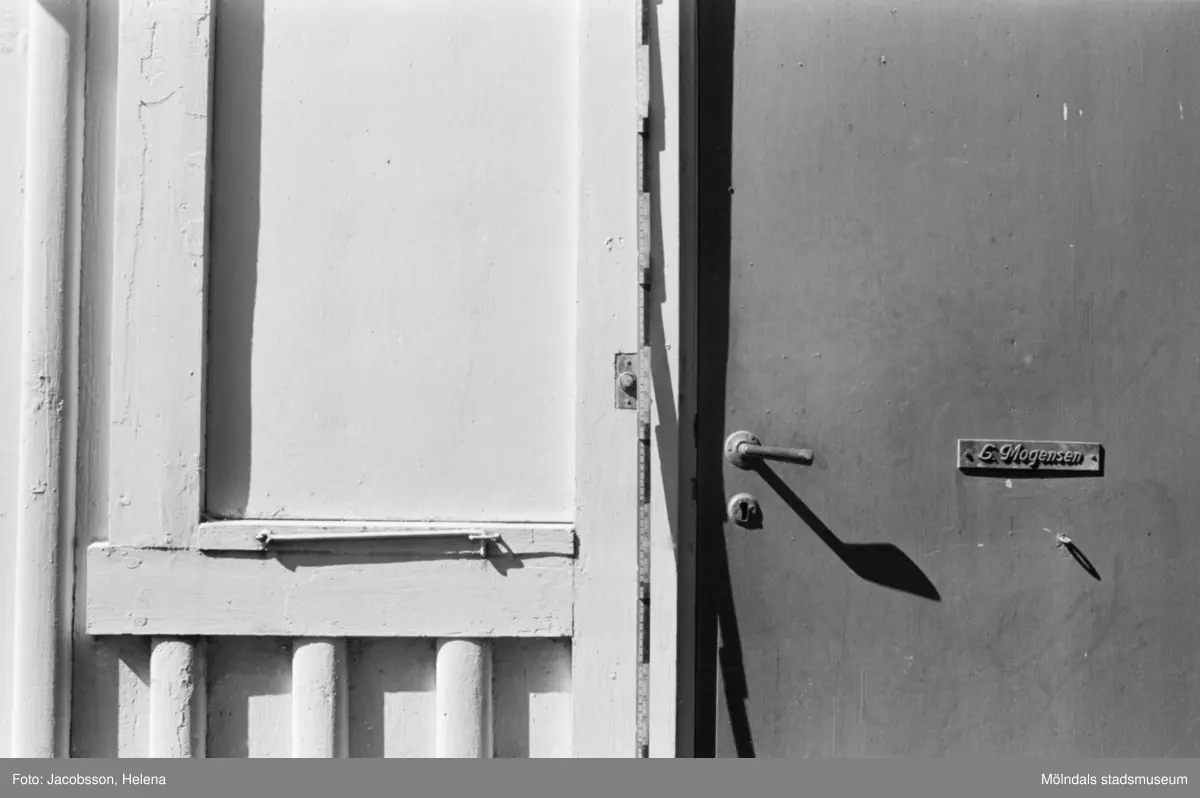 Bostadshus Roten M 11-12, okänt årtal. En husgavel med stängt fönster och stängd dörr.