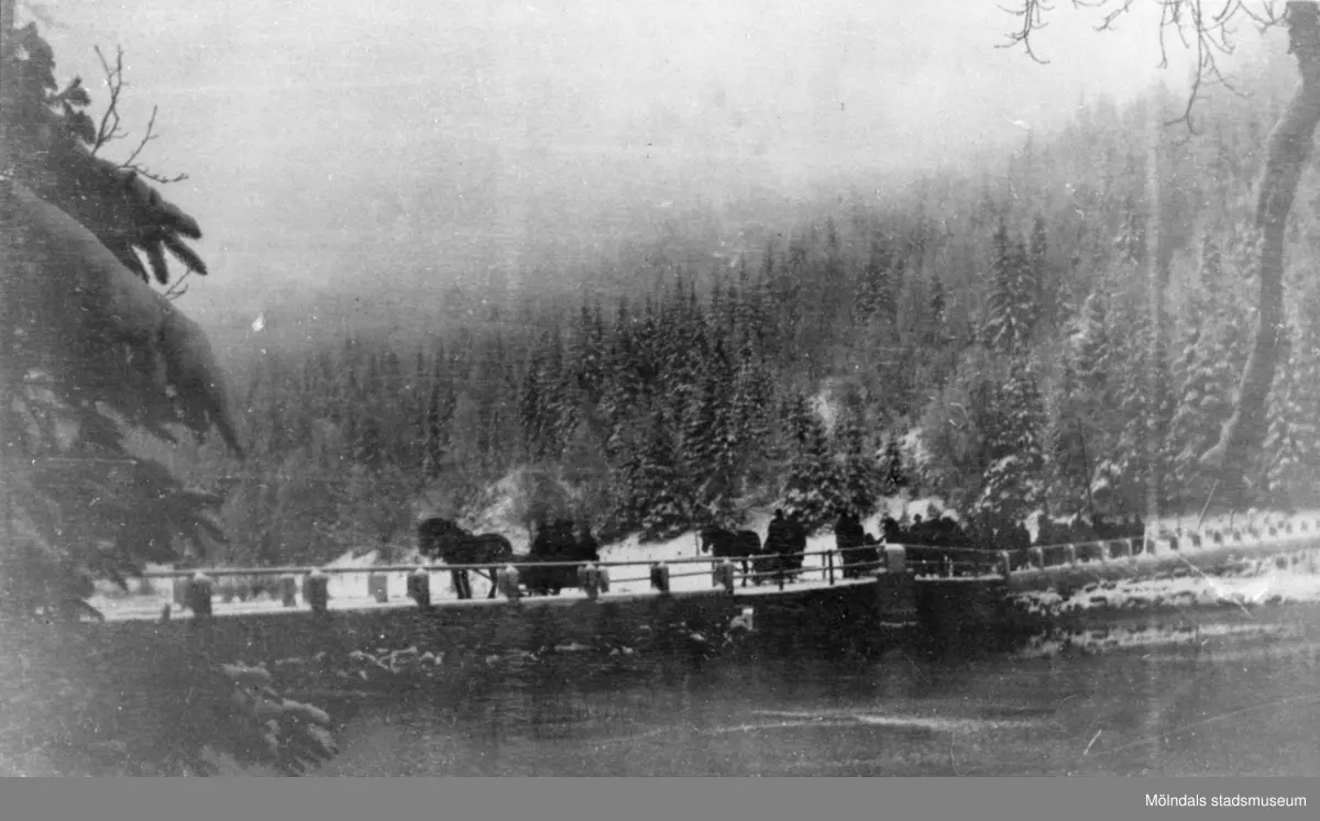Slädfärd med häst troligtvis till julottan, 1930-talet. Från Hällesåker runt Insjön och tillbaka.