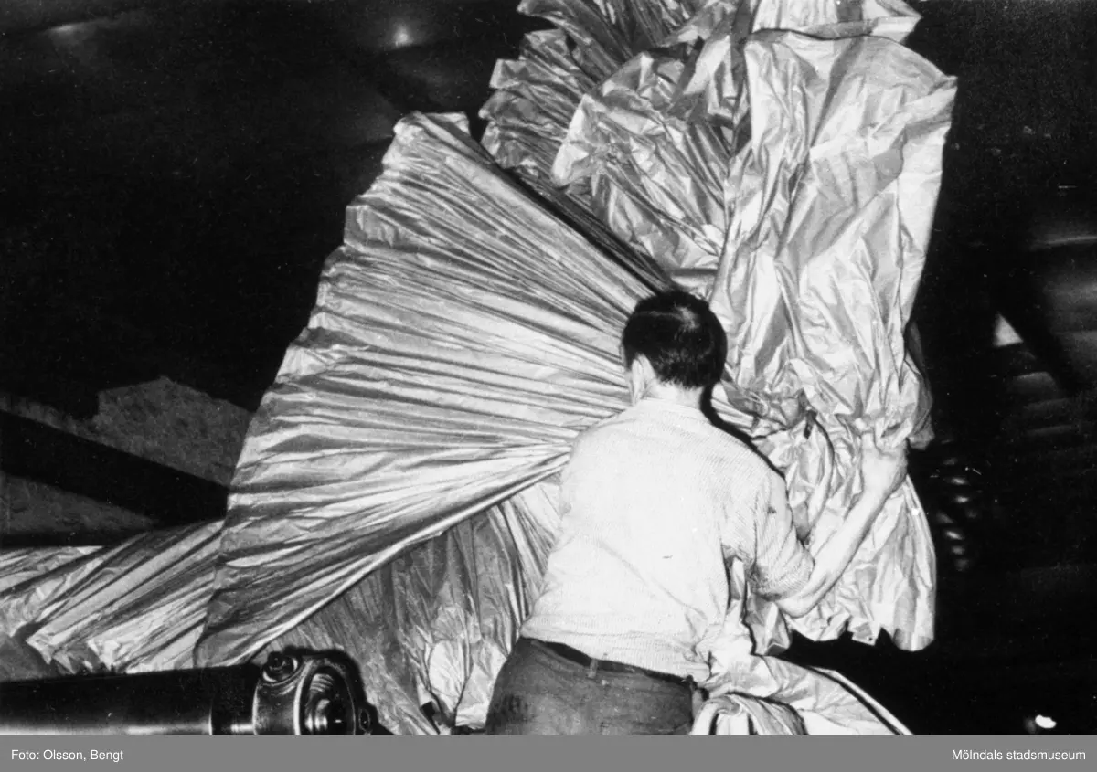 Anders "dansken" vid maskinglätten på Papyrus i Mölndal på tidigt 1960-tal.