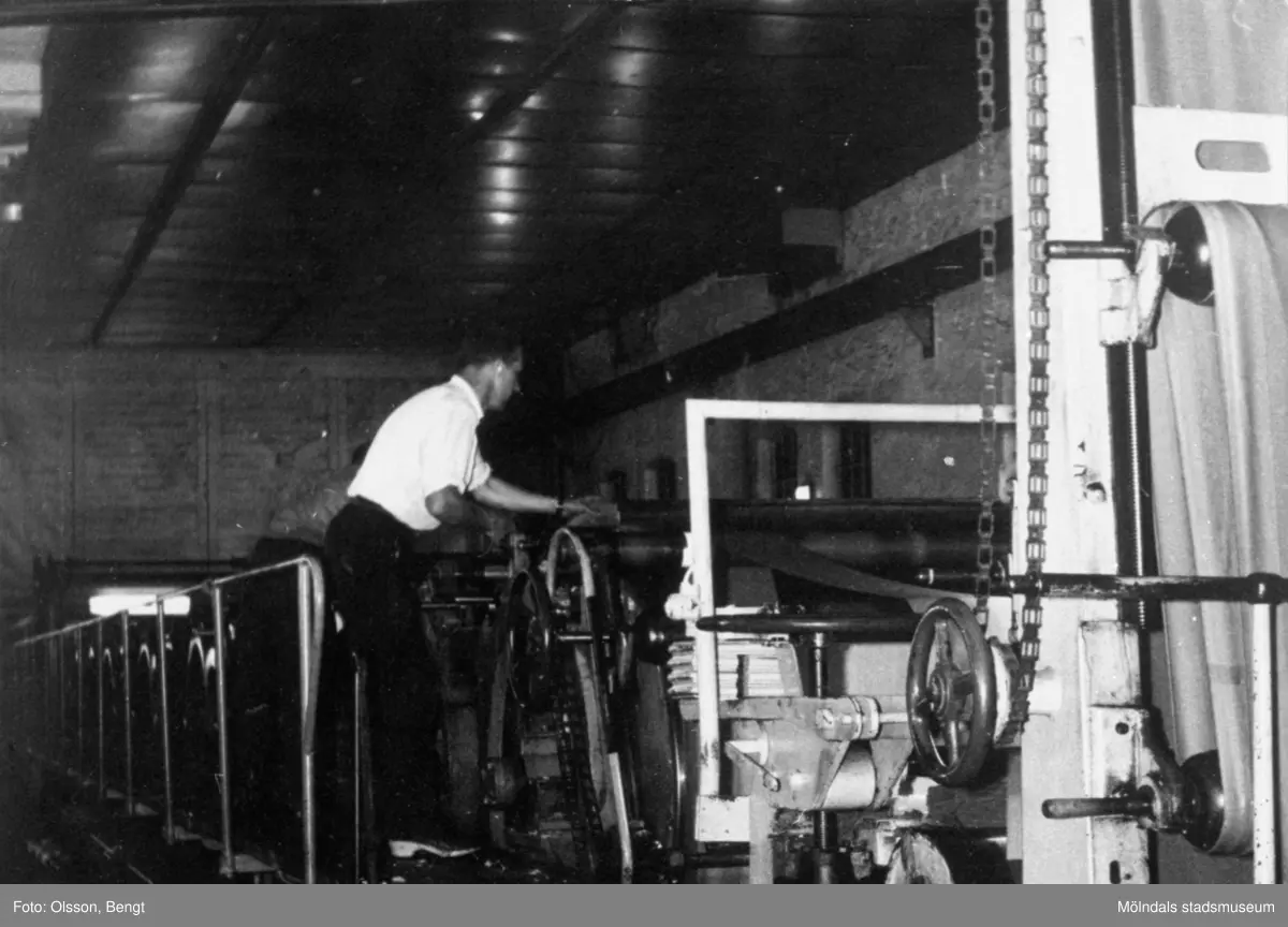 Pappersmaskin. PM 10, torkpartiet på Papyrus i Mölndal år 1962. Kurt Floman vid maskinen.